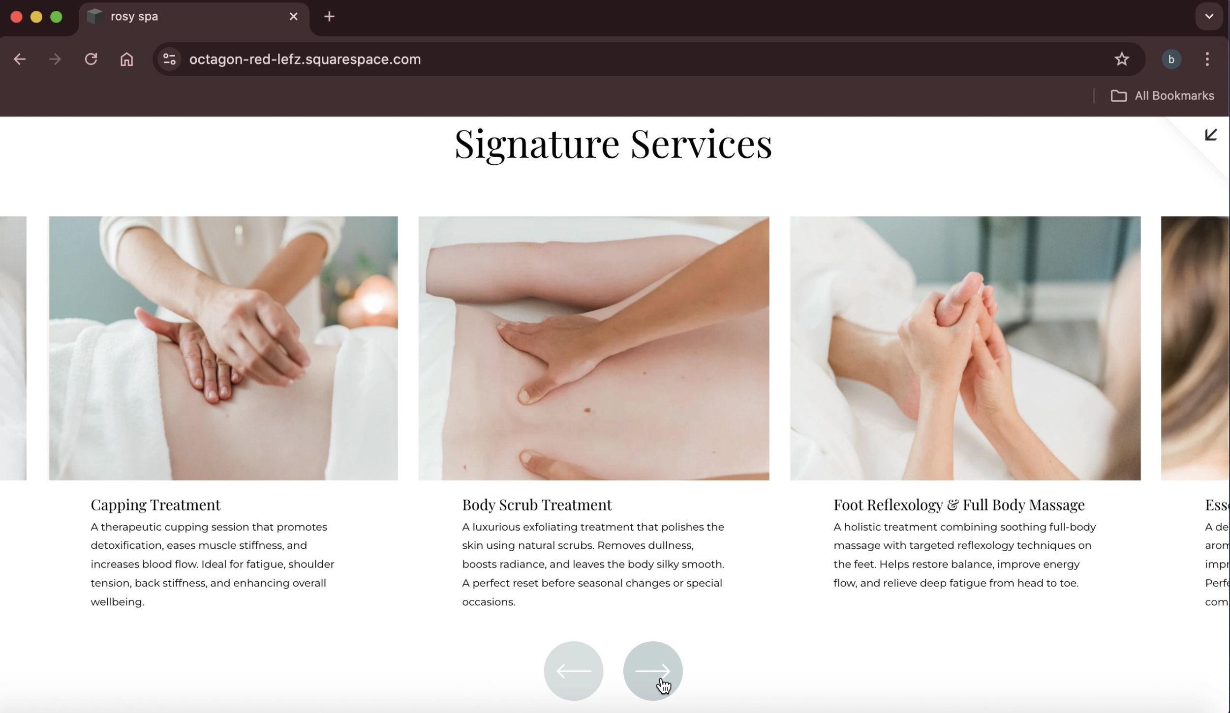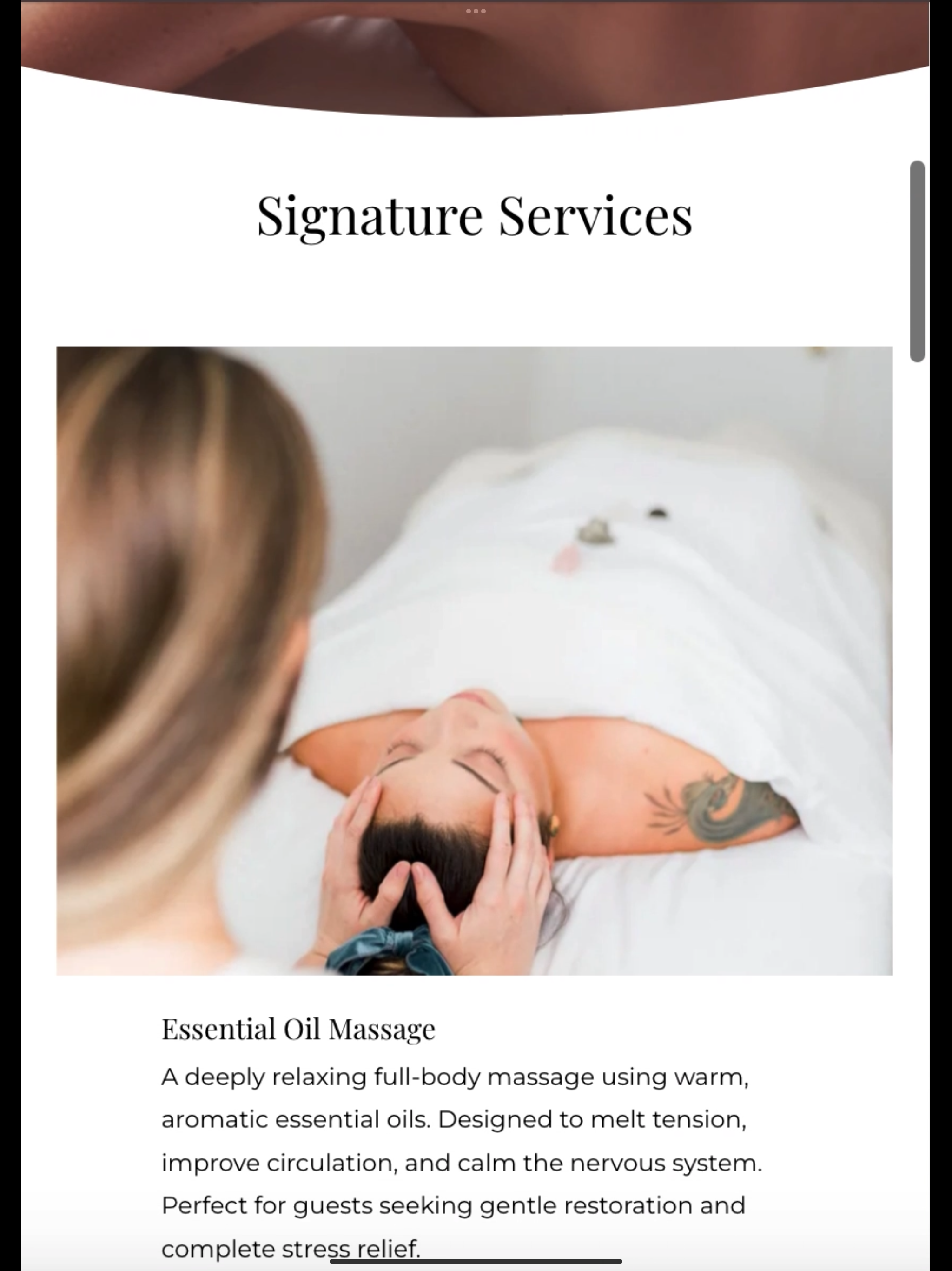 Clear Service Categorization: Massage services organized into easy-to-understand sections to help clients quickly find the treatment they’re looking for.